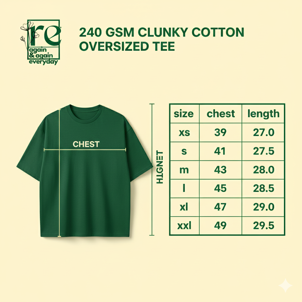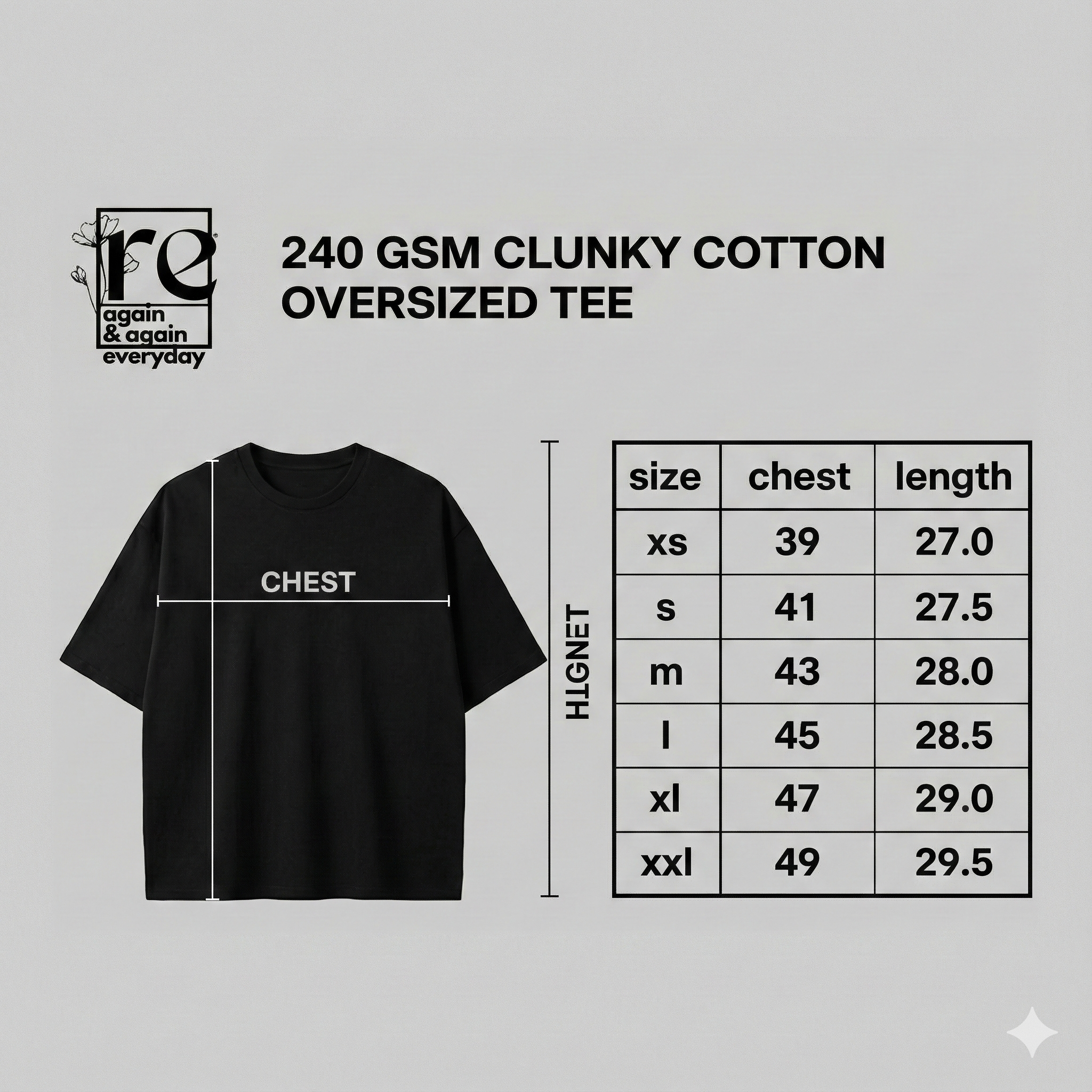 “180 & 240 GSM, Add on that with 320 GSM CLUNKY cotton for sweats & hoodies along with some 280 gsm polos that feels cotton candy - soft, and built to last. Heavy enough to flex, light enough to live in — the oversized fabric your closet didn’t know it needed.”