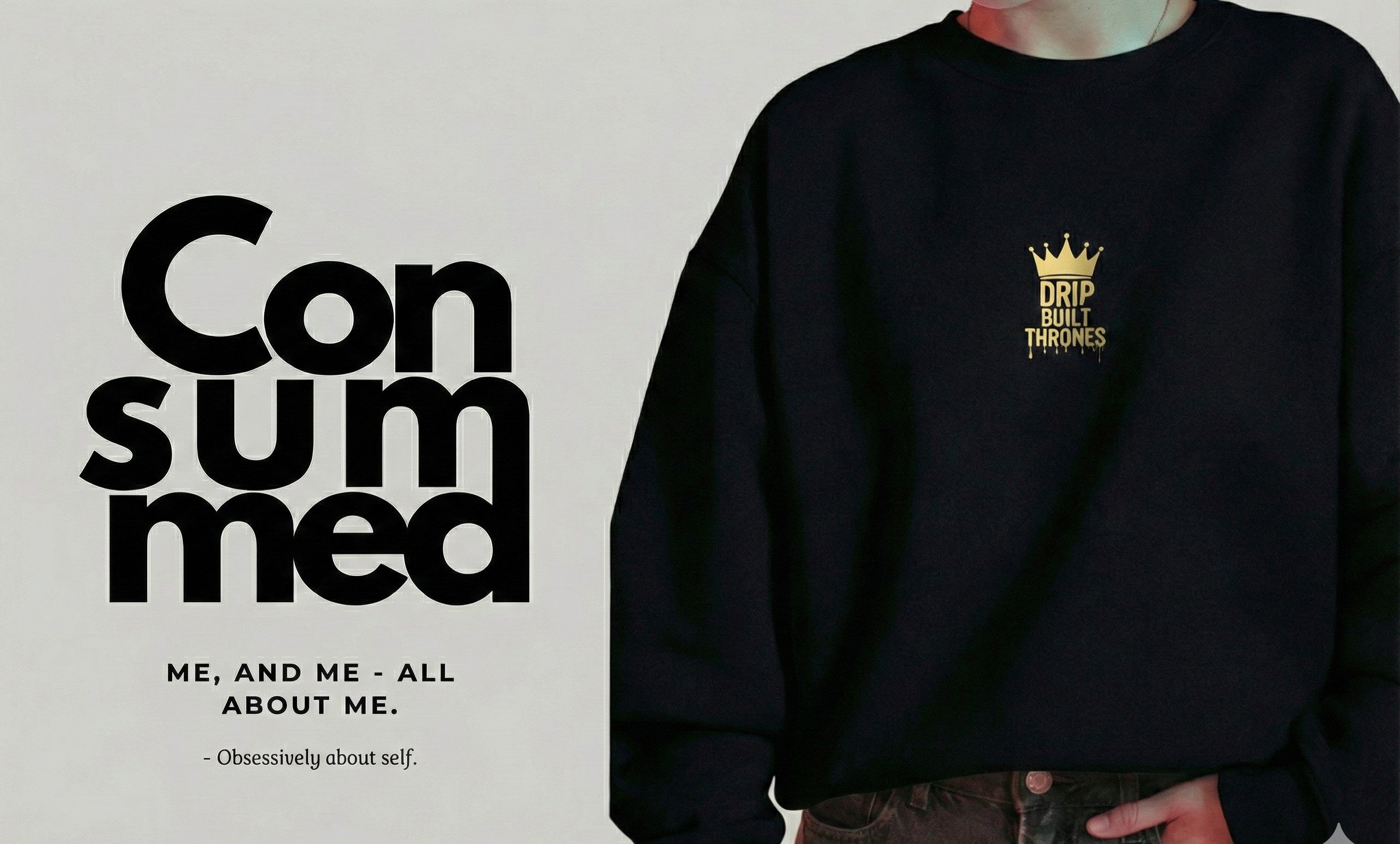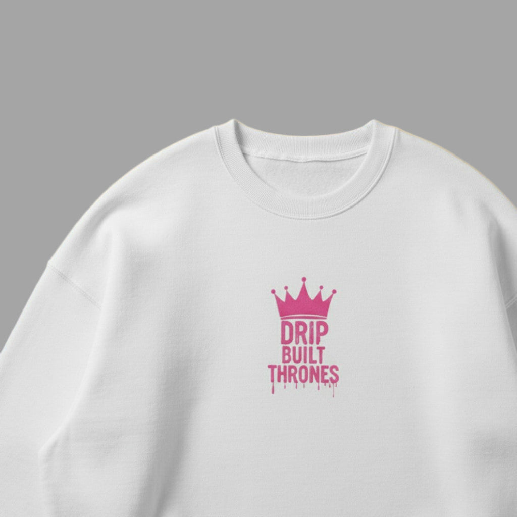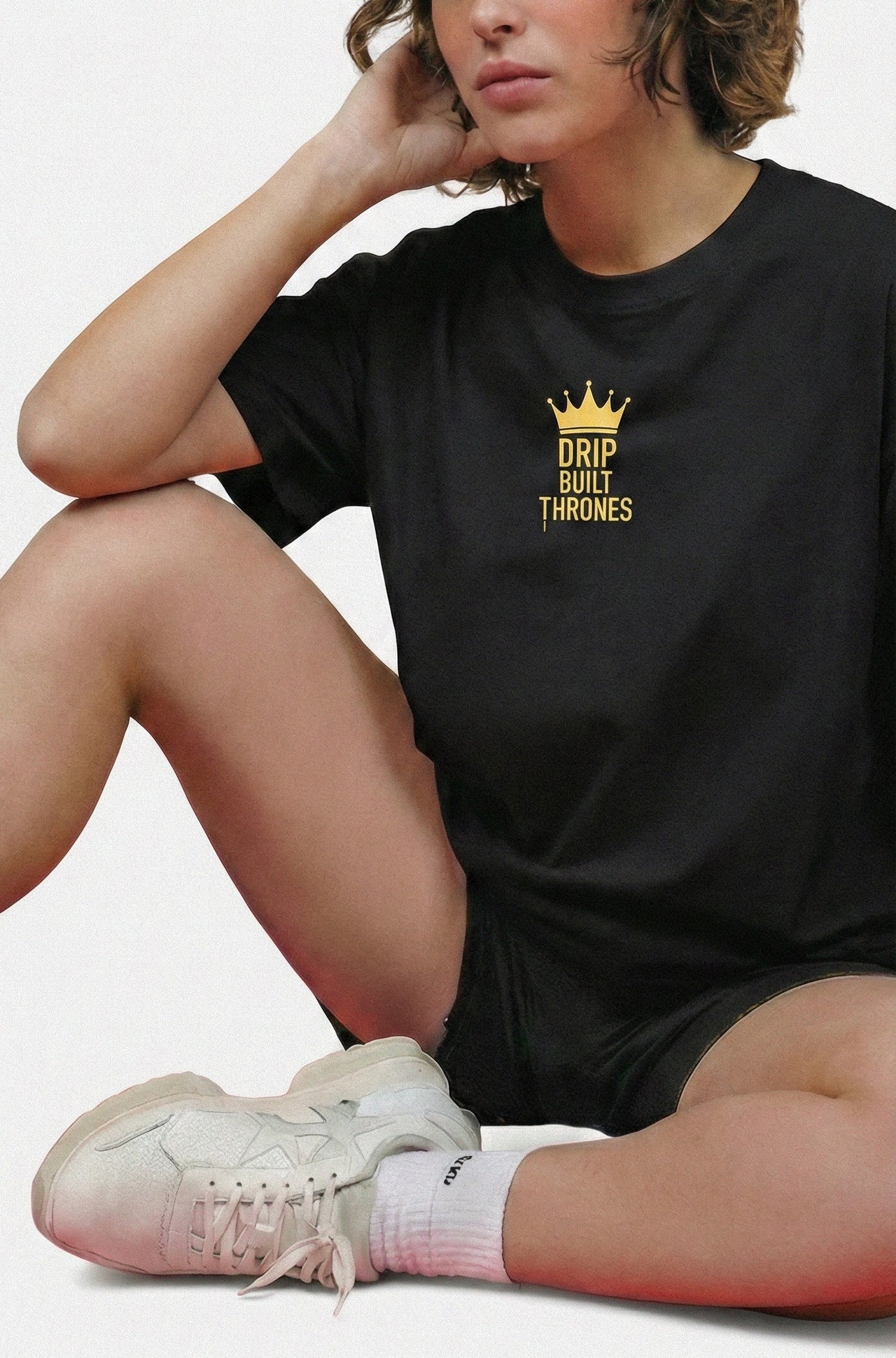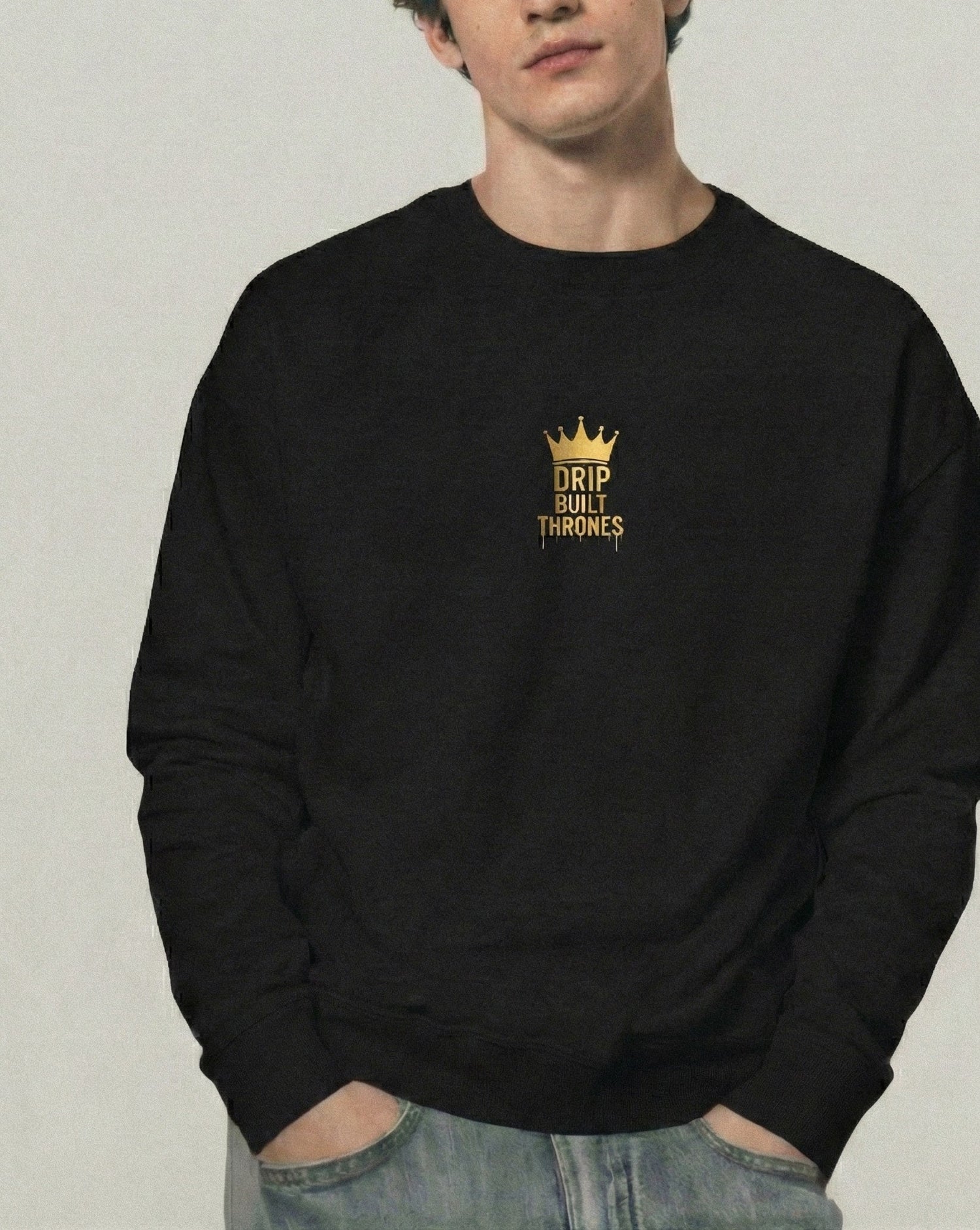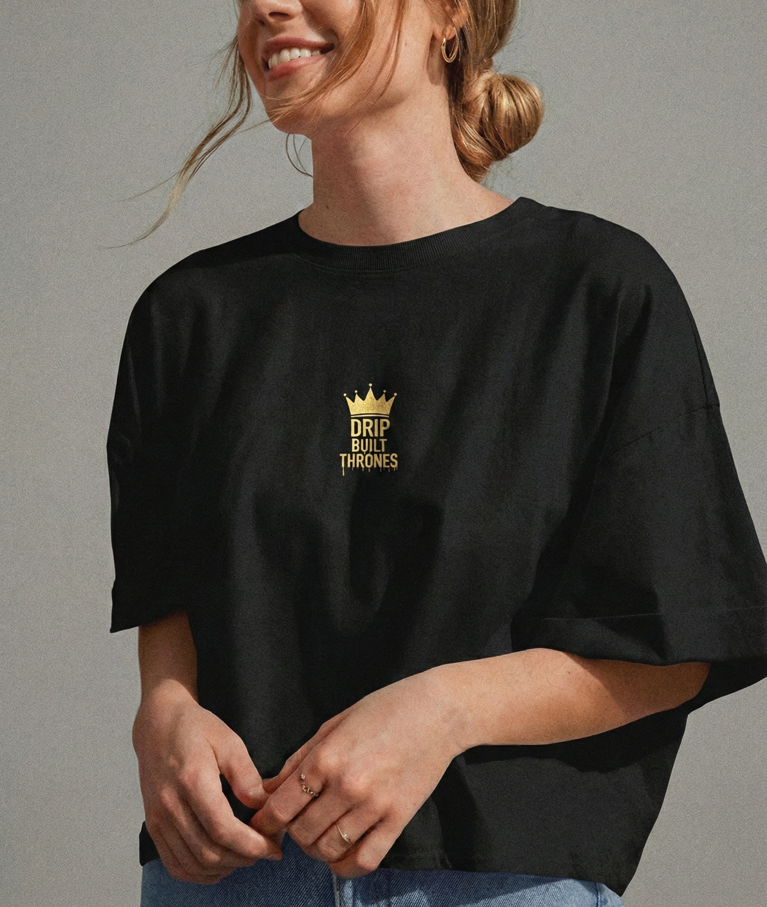"a minimalist sub macro branding of drip built thrones with 4x5 cm size specification for our custom un-inspired apparels."