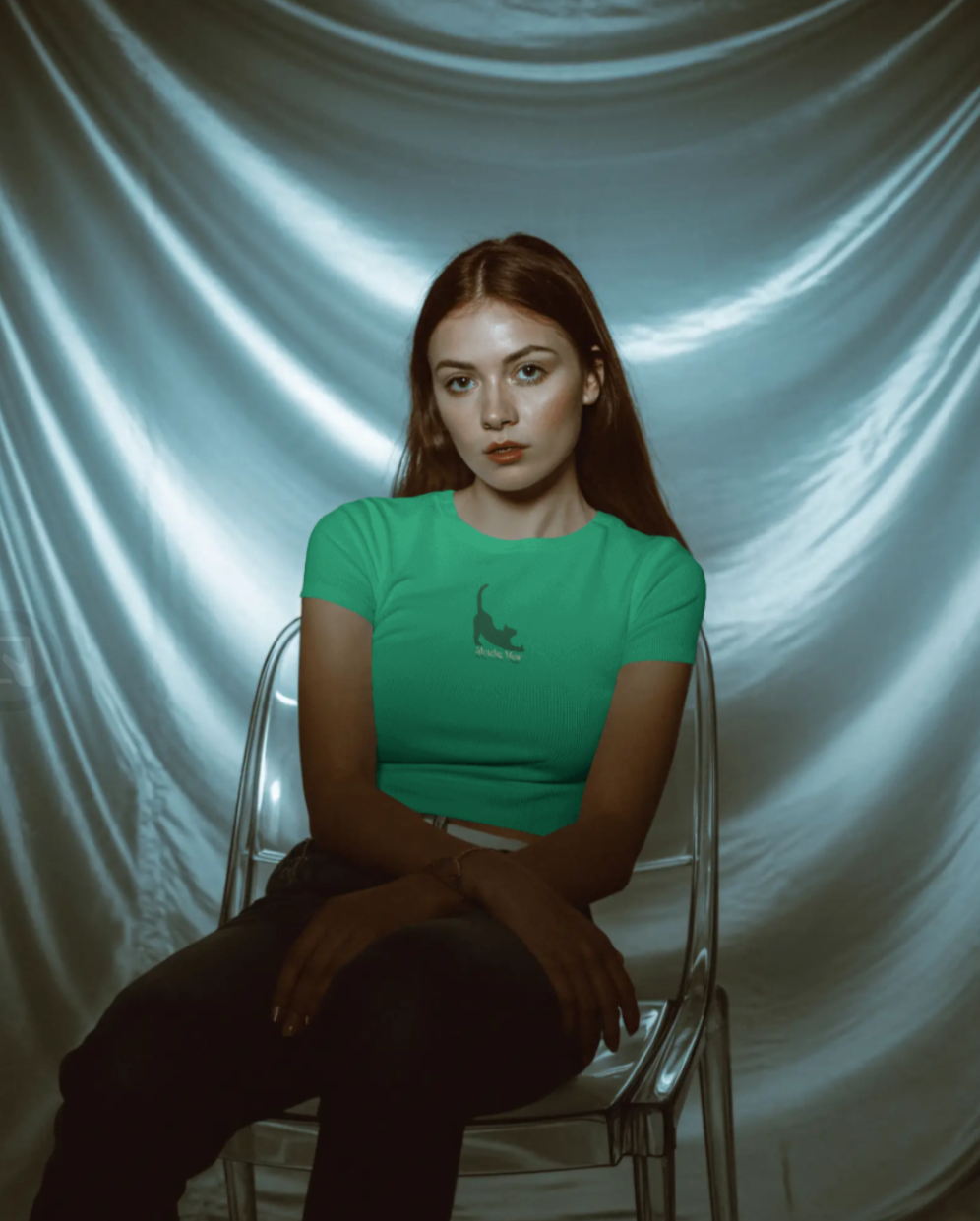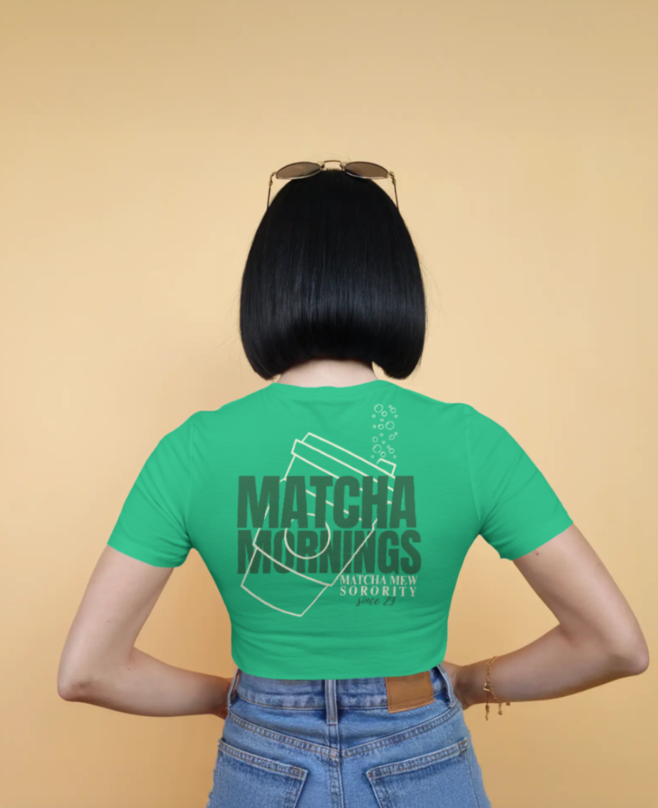The Matcha Mew Sorority Tee is now a tight-fit top (still 180 GSM premium cotton), made to pair with baggy jeans — meaning we’re going for that "clean fit meets lazy drip" energy. still conquer-core — just a little more snatched.