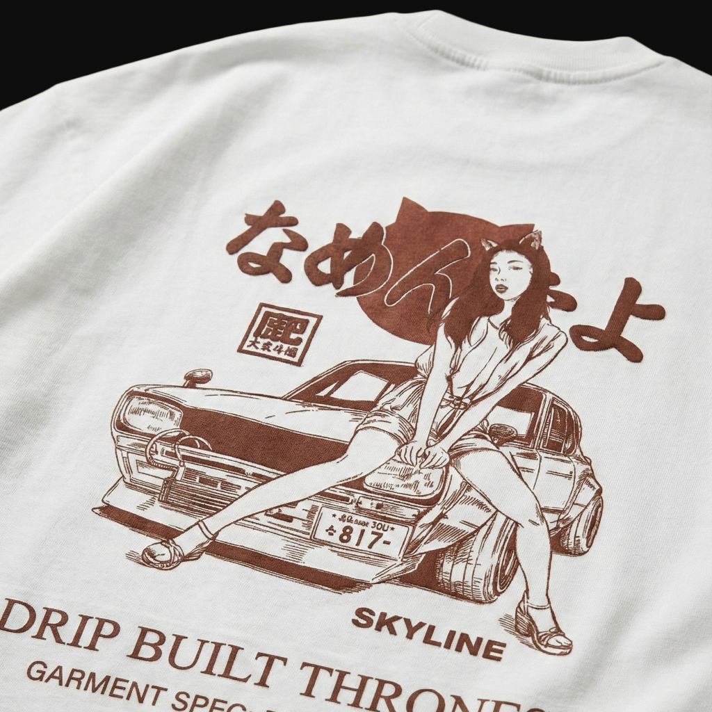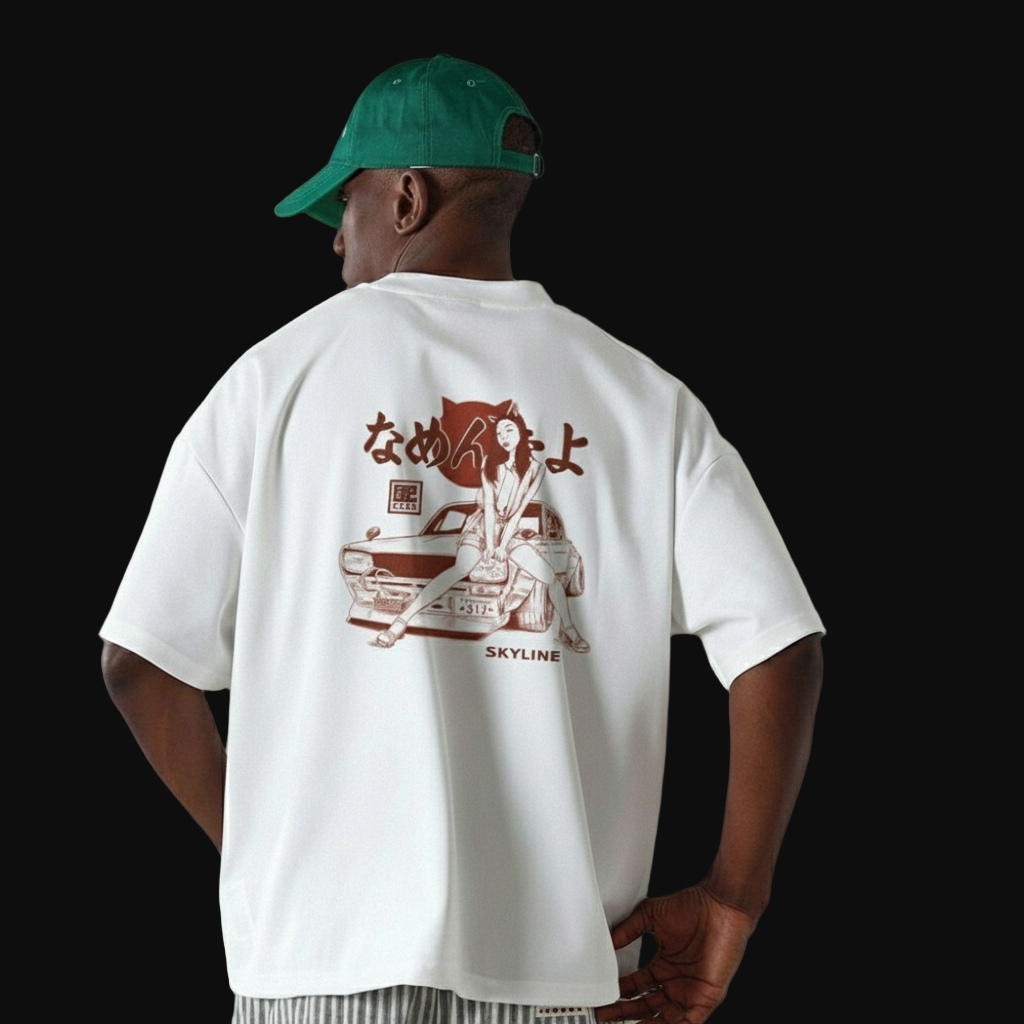 “240 gsm clunky cotton… matlab weight ka scene hai, par itna bhi nahi ke tum uske upar sochna start kar do.fit bilkul woh beech wala — oversized bolne ka mann nahi, fitted bolne ka shauk nahi. bas ‘haan yaar, sahi hai’ type.kapda soft enough to not irritate, thick enough to look serious, aur overall vibe: