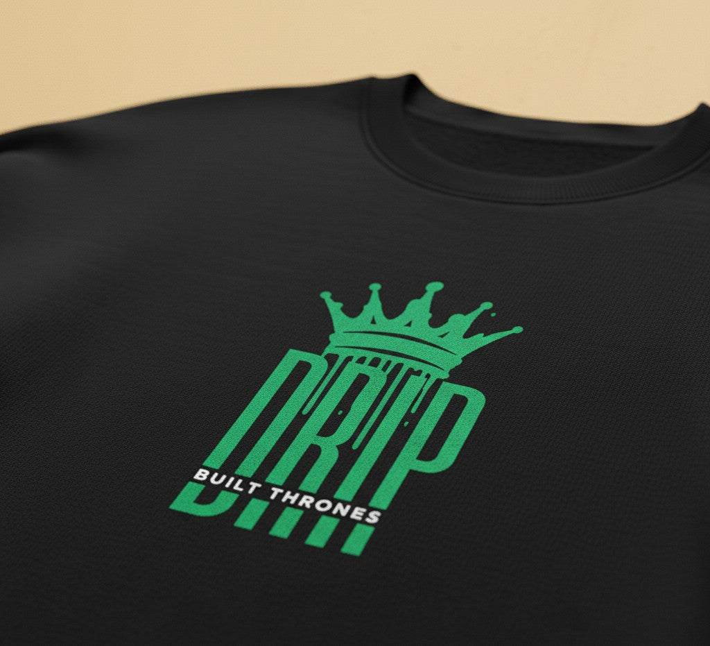 Blacked-out calm, pirate-core chaos. Puffed cotton-fleece that feels heavier than your thoughts. Zoro at the back, Drip Built Thrones up front — balance restored.