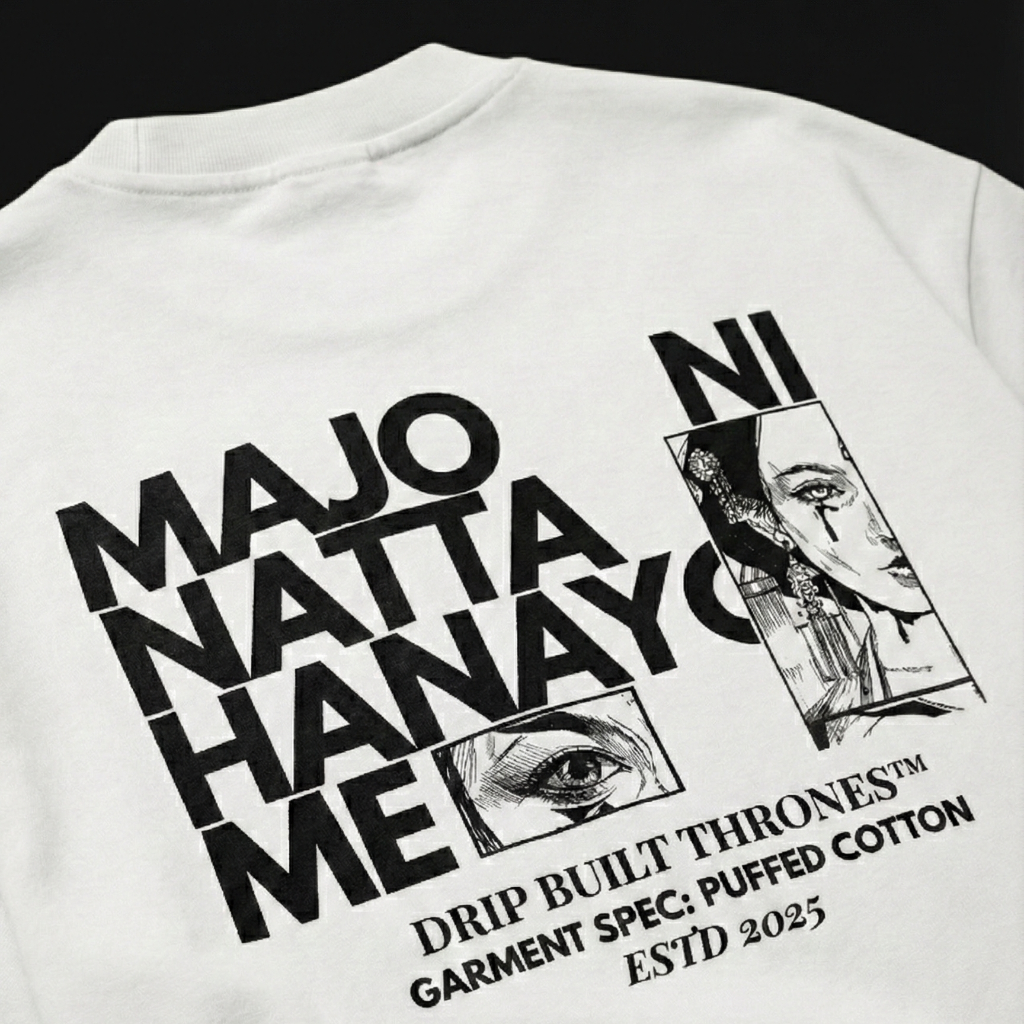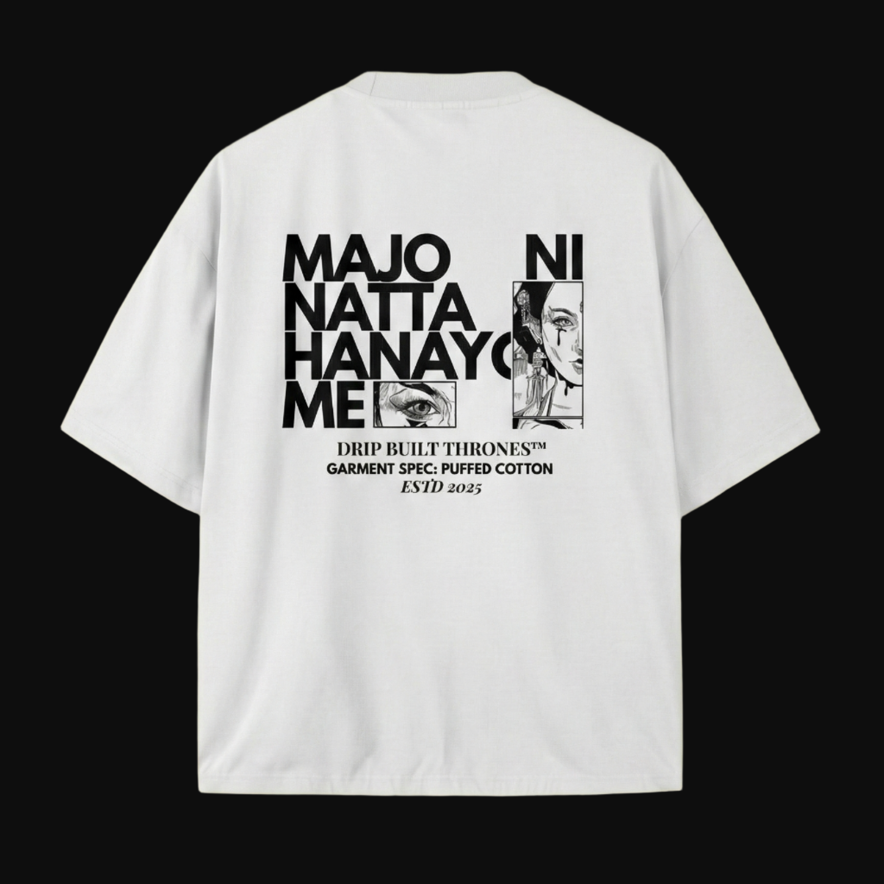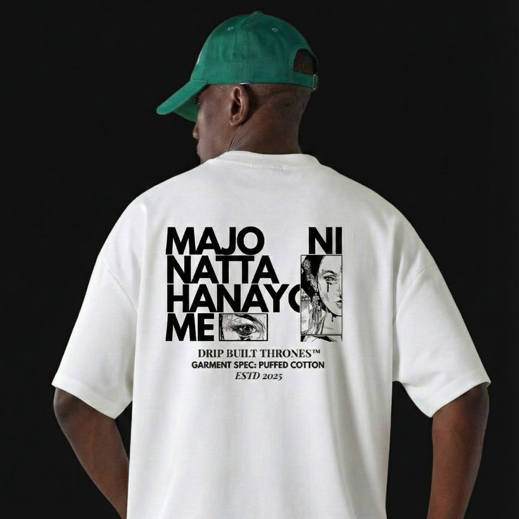 “240 gsm clunky cotton… matlab weight ka scene hai, par itna bhi nahi ke tum uske upar sochna start kar do.fit bilkul woh beech wala — oversized bolne ka mann nahi, fitted bolne ka shauk nahi. bas ‘haan yaar, sahi hai’ type.kapda soft enough to not irritate, thick enough to look serious, aur overall vibe: