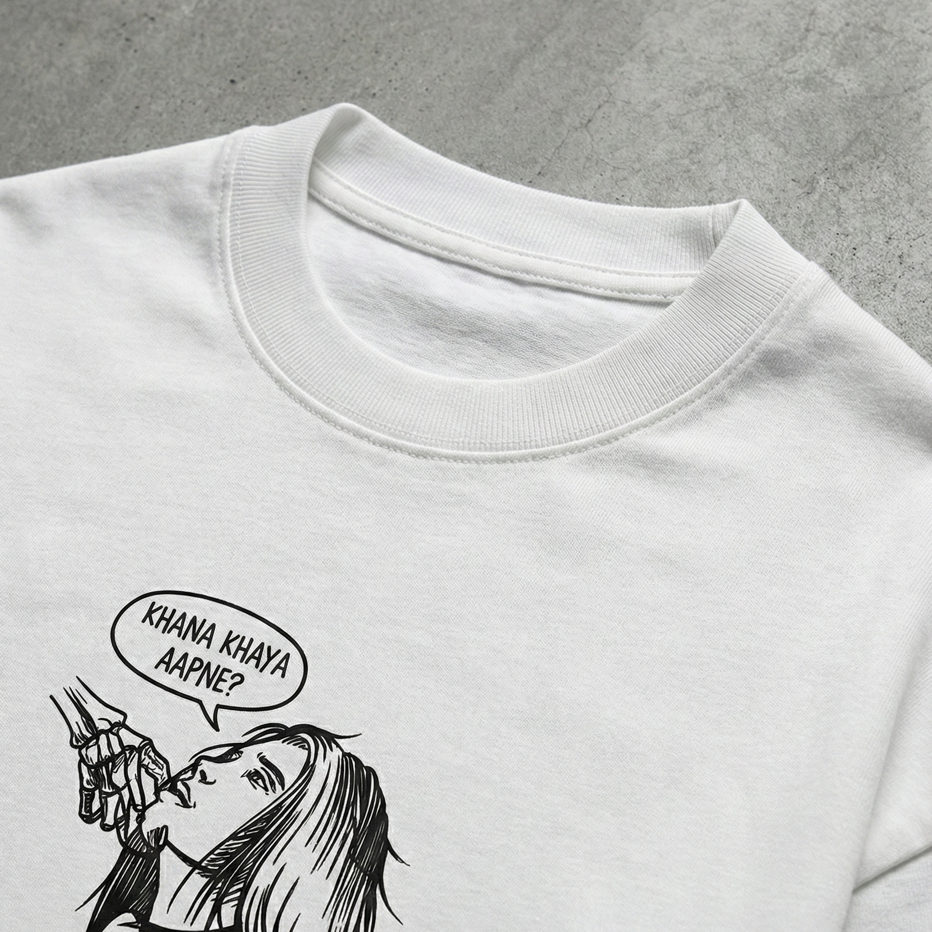 - “khana khaya apne?” written like a twisted version of affection, peshrunked